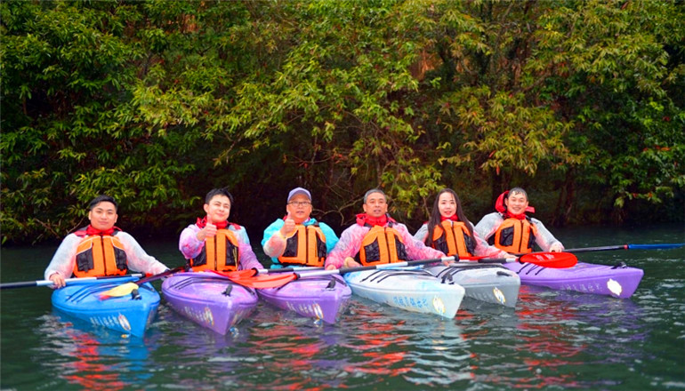 皮划艇团建课程体验既具备常规拓展训练的紧张刺激,又带有水上活动特有的娱乐性,在水天一色间,释放激情,欢乐指数极高。